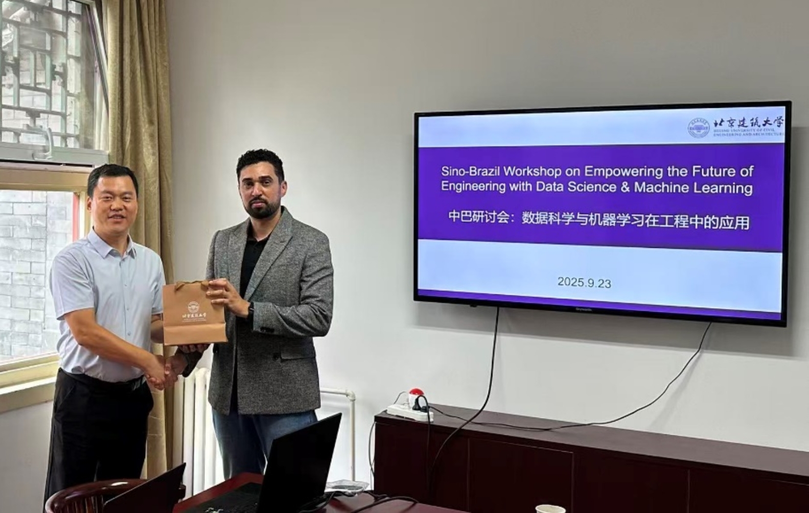 李之红副院长对菲利克斯副教授的到访表示热烈欢迎,并赠送具有北建大特色的纪念礼品。他介绍了我校的办学历史、学科特色以及在服务首都城乡建设方面的代表性成果。同时,他表示圣保罗州立大学土木工程专业作为巴西顶尖学科,在科研水平、教学严谨度和产学研结合方面优势突出,与我校学科规划和发展愿景高度契合,形成了战略上的同频共振。本次交流活动是既两校签署《校际合作协议》后,深入落实既有合作协议、推动共建共赢的重要举措,有效拓展了双方在师生互访、科研协作与学科共建等领域的合作空间。双方一致同意,将依托“一带一路”建筑类大学国际联盟,聚焦智能建造、智慧城市等前沿方向,加强学科协同与人才联合培养,共同为中巴两国建筑与土木工程领域输送高素质专业人才,推动行业技术创新与学科融合发展。菲利克斯副教授感谢我校的热情接待,并系统性的介绍了巴西圣保罗州立大学的独特魅力与雄厚实力。