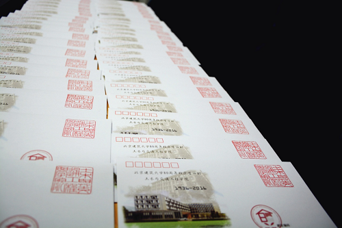 右下角为发行编码,编号从“800001”到“800500”,前两位数字寓意为建大80年校庆。其中“800080”将送交校史馆。