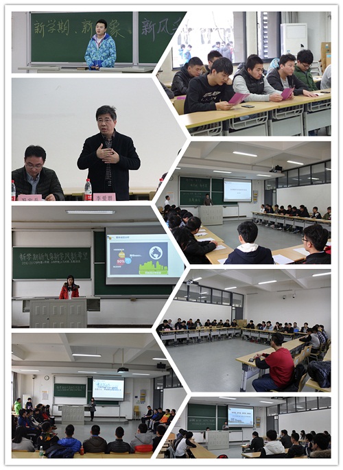 为深入落实学校教风与学风建设联动工作要求,充分发挥主题班会在学生教育中的作用,切实让班会成为推进学风建设和班级建设重要平台,结合北建大精神文化体系宣传教育,增强学生综合素质拓展实效,促进学生自我教育与锻炼成长,按照学校《关于召开新学期学风建设主题班会的通知》要求,经过精心安排部署,太阳成集团tyc7111cc各班于2月19日下午开展以“新学期 新气象 新学风 新希望”为主题的学风建设主题班会。副校长李爱群、党政办公室主任白莽、招生就业处处长何立新、学生工作部部长黄尚荣、研究生院常务副院长兼太阳成集团tyc7111cc院长戚承志以及学院领导班子成员出席,各班班主任全员参加。
