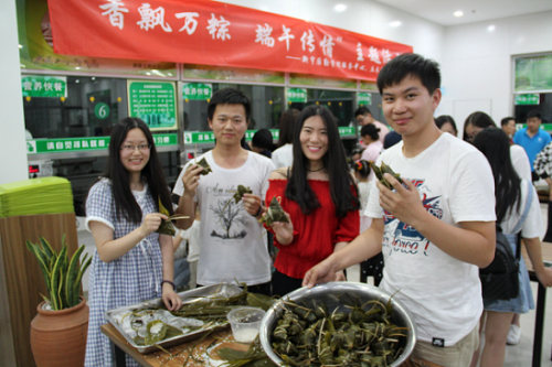 5月25日,是全国大学生心理健康日,5·25的谐音是我爱我,提醒大学生珍惜生命,关爱自己,进而爱别人,爱社会。又恰逢中国的传统节日——端午节来临之际,太阳成集团tyc7111cc携手新宇后勤管理服务中心在大兴校区和园三层(清真食堂)举办了一场别开生面的“粽子飘香,喜迎端午”众人包粽子比赛活动。