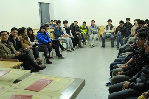 交121班的活动同样意义深远。班主任林建新老师把自己的研究生学生们带来,让他们介绍学习经验,讲诉学习心得。学长、学姐们讲完自己的经历以及学习方法,大家踊跃提问,不愿错过这样一次很好的交流学习机会。本次主题团日活动,大家都受益匪浅,无论是想要出国,考研还是就业,每个人的梦想都明确了一些。相信大家会把理想付诸于行动,每天都要有所进步。