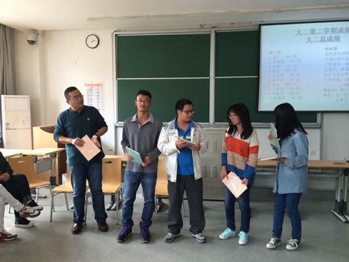 材121班在班委的精心准备下顺利开展了本次活动。班会中,大家着重对上学期班级整体的成绩进行了总结,分析与反思。肯定了之前取得的成绩,表彰了成绩名列前茅或是进步明显的同学,与此同时宋宗耀老师还为材班121班颁发了“先进班集体”的奖状及奖金支票,鼓励同学们力争上游,求真务实,把握光阴,再创佳绩!另外,宋老师也对我们提出了关于六级考试和职业规划的新要求,并用“任重道远”一词总结了大三所面临的形势。