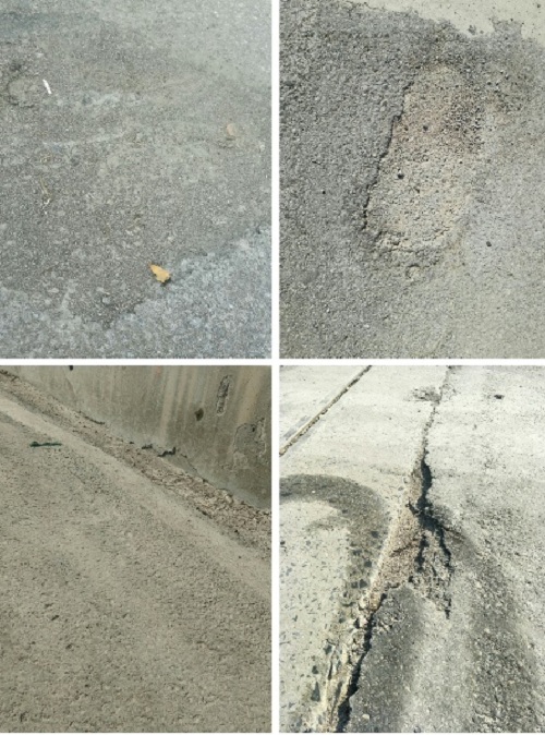 为了进一步纵向对比钢结构桥和水泥桥两者桥面铺装的病害情况,团队又考察了秦淮河上的两座跨径较大的水泥桥——三汊河桥和下关大桥。两座桥在车道交汇处,也可以看到明显的车辙和拥包问题,在桥面中部还有少量的裂缝和较多的坑槽。这些都成了大桥的心痛之处,也成了道桥学者的痛心之处。