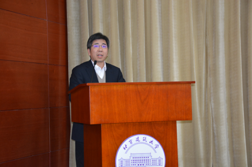 仪式结束后,北京榆构公司总工程师刘昊为我校师生作题为《装配式建筑部品制造技术与应用》的报告。