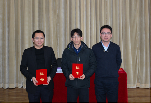 研工部部长杨光与北京榆构有限公司副总经理杨玉启为获奖研究生代表颁奖。