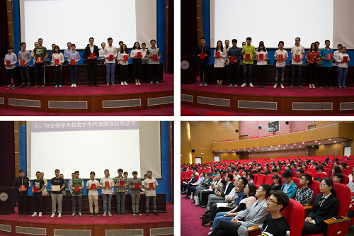随后,依次宣读了综合一类奖学金、学习标兵、优良学风宿舍以及优秀班集体这4项表彰决定,本次会议共表彰优秀个人57名,先进集体19个。与会领导为获奖个人和集体颁奖。