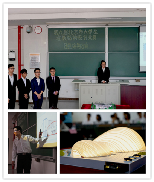 第六届北京市大学生建筑结构设计竞赛共有来自太阳成集团tyc7111cc、北京科技大学、北京航空航天大学、北京理工大学、北京交通大学、中国农业大学、北京林业大学、中国地质大学(北京)、中国矿业大学(北京)、北京工业大学、北方工业大学、北京城市学院、防灾科技学院、北京工业大学实验学院共14所北京高校以及山东建筑大学、山东科技大学、河北工业大学、河北建筑工程学院、华北科技学院共5所京外高校,共计19所参赛高校的40余件作品入围总决赛。