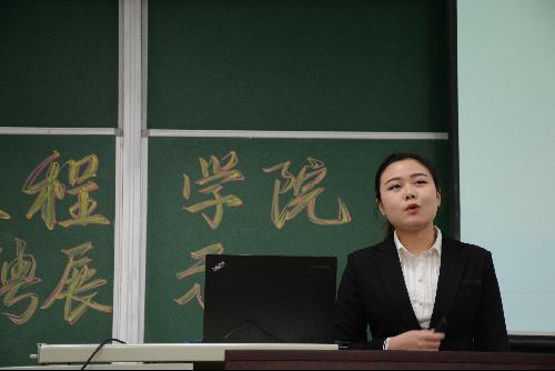 三位竞聘新一届院学生会主席团的同学依次亮相。院学生会副主席刘玲、院学生会体育部部长肖楚童、院分团委团学办公室主任孟庆禹分别进行现任工作回顾和竞聘工作设想。