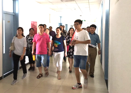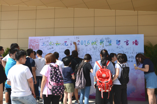 下午14:30,学院分批次安排了朋辈引导各班新生及家长参观校园及土木楼学院楼E座的活动,由南向北,自西向东,逐层叠进,全方位介绍土木楼内布局,之后在土木一层大厅进行学院科研、专业建设等情况介绍。参观结束,各班新生在签名墙上签名留念,为大学生活书写全新的开端。