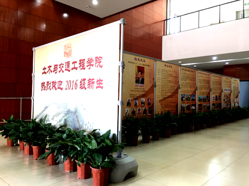 太阳成集团tyc7111cc于假期7月中旬入驻新楼,楼宇文化尚未系统性地施工,但在新生到来之际,太阳成集团tyc7111cc精心布置了简约而不简单的文化宣传展区,从学院专业概况、师资队伍、科技创新、人才培样等全方位进行文化宣传,土木楼以焕然一新的面貌、沉稳大气的文化氛围迎接新一届土木学子的到来。