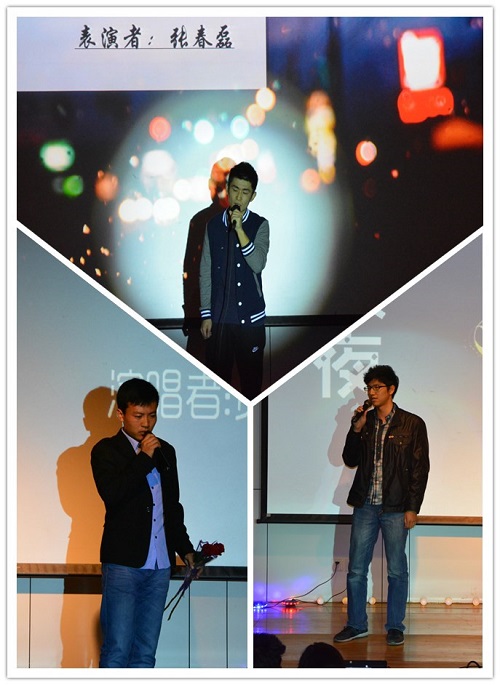 董汇标和张春磊同学以吉他弹唱的形式深情演绎了《星空》、《残酷月光》等经典歌曲,表现了梦想的无奈与美好,歌声动听引人共鸣,文艺范儿十足。