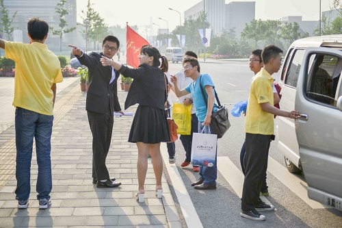 志愿者引导参赛选手签到