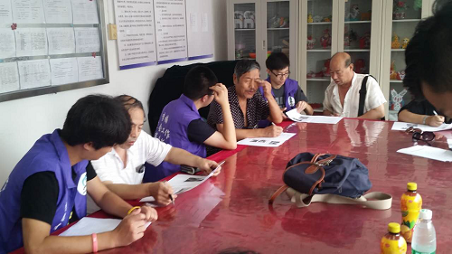 调查开始前,李楠工作事务所社工陈思和温馨家园社区的对接负责人黄京玉老师对同学们介绍了温馨家园社区附近的地面交通情况,并对其进行了一些本次活动的临时培训。同学们对事务所和社区的帮助表示了感激。再经过一系列分工之后,同学们开始了这次忙碌而充实的问卷调查环节。