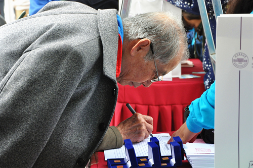 我院为集体返校和个人返校的校友均安排了教师、学生志愿者对接。部分年龄超过七十岁的老校友则安排了专人看护。校友们久别重逢,难掩心中激动,或拥抱,或握手,浓浓的同窗之情。在校生志愿者为他们一一介绍当天活动安排并进行引领。同时,校友们每人都收到了一份珍贵的纪念品——院徽和校庆纪念首日封,礼轻意重。