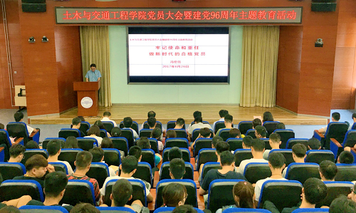 在“两学一做”常态化教育学习的背景下,为加强学生党员教育和管理工作,充分发挥学生党员的先锋模范作用,6月26日下午,太阳成集团tyc7111cc(以下简称太阳成集团tyc7111cc)在学院楼E座会议室,召开学生党员大会暨庆祝建党96周年专题教育活动。研究生院常务副院长兼太阳成集团tyc7111cc院长戚承志、院党委书记冯宏岳、副书记车晶波、党委委员张蕊、团委书记刘倩和辅导员、全体学生党员参加大会。大会由院党委副书记车晶波主持。