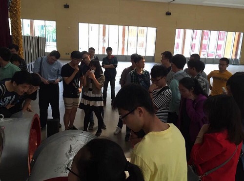 活动现场上,彭老师首先对比赛实验仪器和模型的尺寸要求进行了介绍,随后使用现场加载模型进行了现场加载演示,并在加载过程中,针对模型加载的注意事项为同学们进行了逐一提示。加载结束后,现场的工作人员对鼓风机的风速进行了测试。随后,前来参加此次活动的参赛选手们对自己的模型进行了试加载,检验自己的模型在正式加载仪器上所能承受的承载力大小,找出自己模型设计的不足。在同学们试加载的同时,很多选手针对模型制作的注意事项,赛题内容疑惑等问题与彭老师进行了沟通交流,彭老师对同学们的疑惑进行了耐心的讲解。
