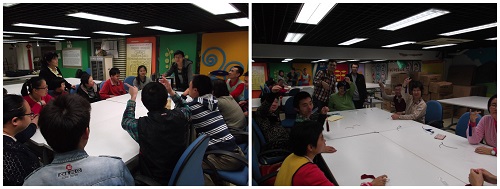 学生党员与职康中心同学一起进行“常见交通标志”学习和中国结制作