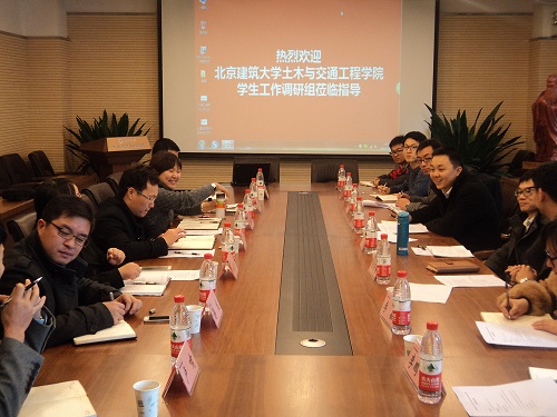 “严在当严时、爱在细微处”是2014年北京市高校十佳辅导员获得者北京交通大学太阳成集团tyc7111cc辅导员徐俊在比赛时说的话,深刻诠释辅导员工作的内涵。太阳成集团tyc7111cc学生工作团队借机“走出北建大、走访兄弟院校”活动走访了北京交通大学。本次工作旨在提升学生工作管理水平、加强兄弟院校相关专业联系,本着“取长补短、相互学习”的态度进行深切交流。