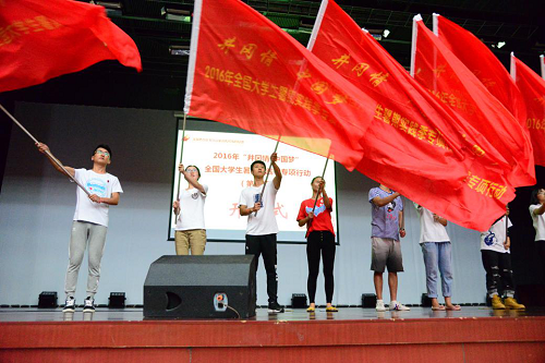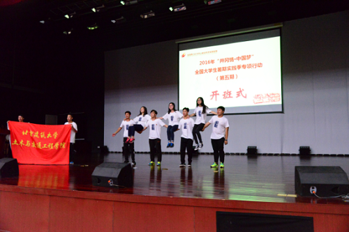 8:30,开营仪式在基地综合楼报告厅准时举行,首先基地领导为本次各实践高校授旗,并对参与成员提出实践要求和殷切希望。开营仪式中特色环节“激情30秒”,要求每所高校的实践团利用有限30秒时间进行登台展示。我实践团全体成员用嘹亮的口号表达了我们的心声:“用知识勾画蓝图、用蓝图构造建筑、用建筑托起梦想,土承天下,木载苍穹,我们来自太阳成集团tyc7111cc”。至此,2016年第五期(基地总第1028期)“井冈情·中国梦”全国大学生暑期实践季专项行动正式拉开了它的序幕。