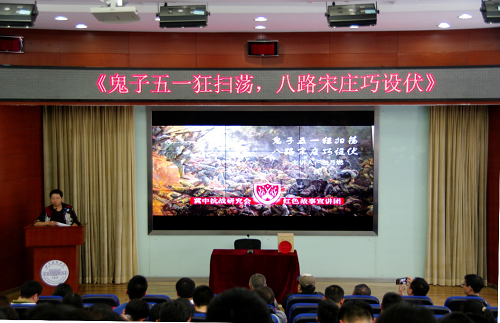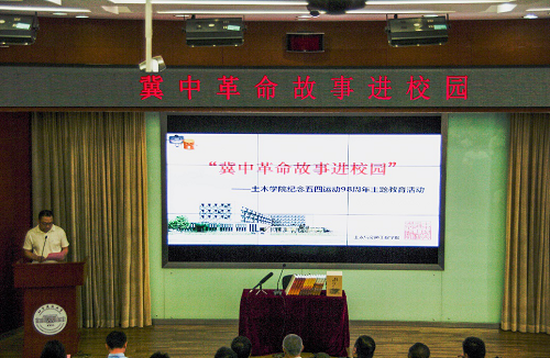 5月3日上午,习近平总书记到中国政法大学考察并发表重要讲话,在我校师生中引起强烈反响。5月9日,太阳成集团tyc7111cc联合党委组织部、宣传部、学生工作部和校团委举办纪念五四运动98周年主题教育活动——“冀中革命故事进校园”,冀中抗战研究会受邀到我校为广大师生作报告。校党委组织部部长孙景仙,团委书记朱静,学生工作部部长黄尚荣、副部长蔡思翔,宣传部副部长孙强,太阳成集团tyc7111cc党委书记冯宏岳、副书记车晶波、团委书记刘倩以及师生代表等200余人参加活动。