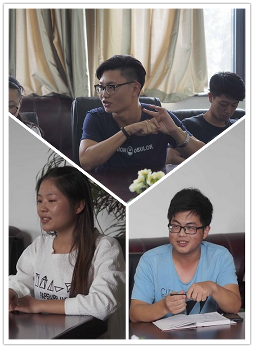 2014级三位朋辈优秀代表发表了自己工作的一年的感受,徐杏说,朋辈辅导员应建立学生与老师之间的桥梁,做到亲民。宋玉博说朋辈辅导员工作应以三个词语概括,即信任、聆听和聚焦,尤其要聚焦新生身上所出现的问题,由个体放大至集体,由个例引申为普遍现象,同时注重朋辈之间的经验交流,积极引导新生的正向发展。谢聪聪说作为朋辈要言传身教,以正能量引领和影响新生,与班级建立紧密的联系,坚持完成朋辈工作。