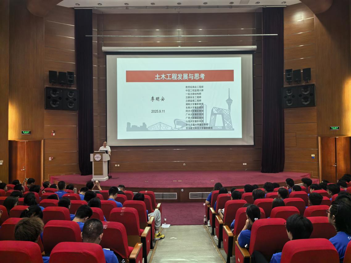 最后,李明安教授对新生寄予殷切期望。他指出,人类衣食住行、上天入地下海都离不开土木工程,同学们要在“绿色化+数智化+韧性化”方面实现多维突破,在大型基础设施建设与改造中发挥更大作用;要弘扬工匠精神,提升综合能力,争做执着专注、追求卓越的高技能复合型人才。