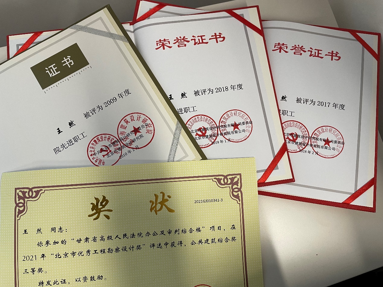 王然获得的部分荣誉奖励证书