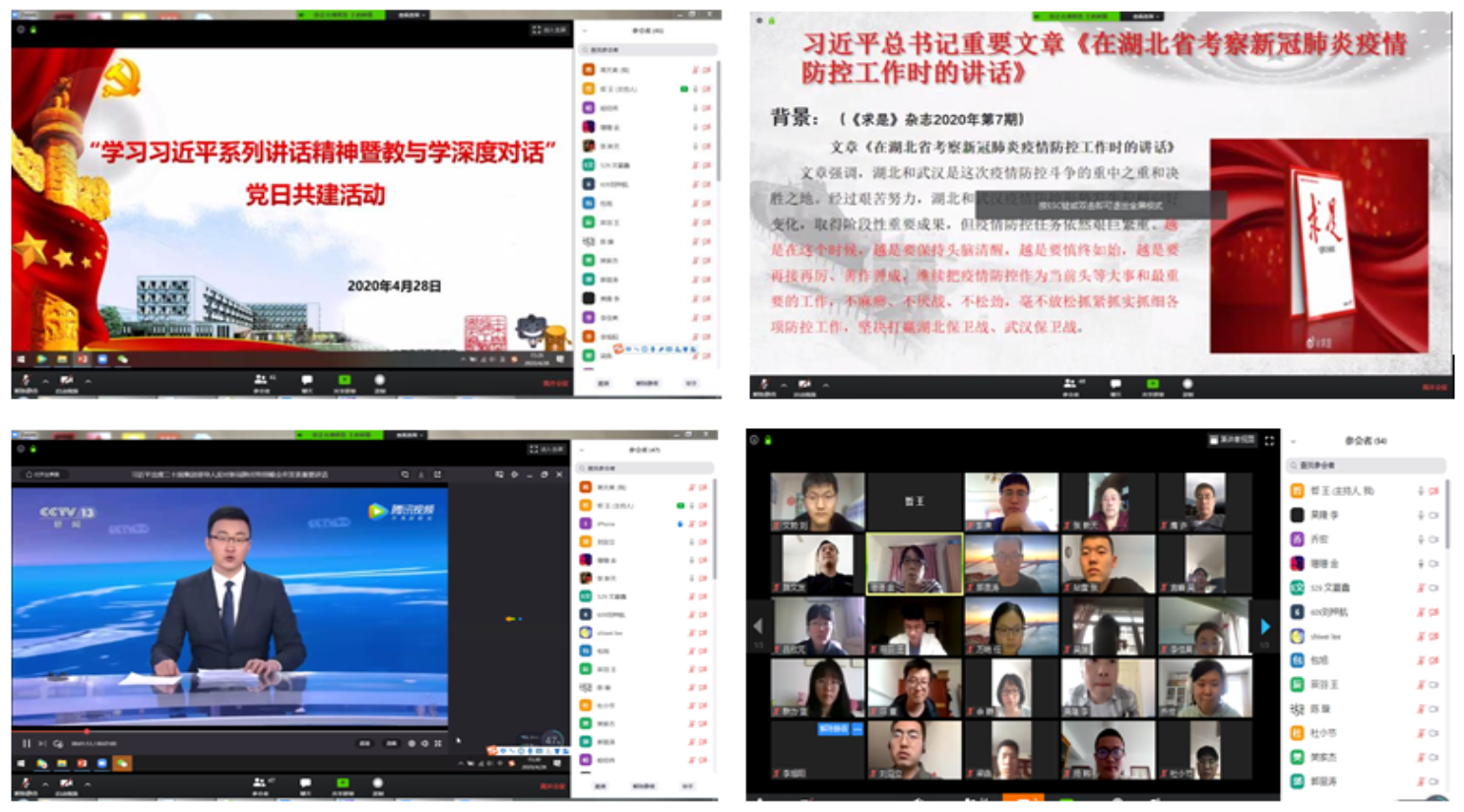 建筑工程系党支部、地下工程系教工党支部、道桥工程系教工党支部和交通工程系教工党支部、材料工程系教工党支部根据专业方向,与对应的研究生和本科生党支部联合共建,严格执行“第一议题制度”,以读原文、看视频等形式共同学习习近平总书记近期系列重要讲话,师生们热议当前疫情防控工作取得的成绩,尤其是总书记给北京大学90后援鄂医疗队的回信深刻鼓舞了师生党员,党员们认为,青年党员应该向90后援鄂医疗队学习,在学习或岗位上做好本职工作,勇挑重担,继续奋斗,做新时代有为青年。师生们还就科研进度、论文写作、学业交流、就业指导、毕业安排等进行交流问答,学生党员们踊跃提问,教师们耐心回答给出建议。对于毕业年级学生由于未开学而引起的心态焦虑等问题,教师党员们更是尽心做好思想安抚工作,对如何克服在家科研、论文写作等困难纷纷以身说法,分享居家科研心得。教师们叮嘱同学们在线教学期间一定要合理安排生活、学习时间,与导师和任课教师等保持密切沟通,端正态度、勤奋学习,一定能度过当前难关。