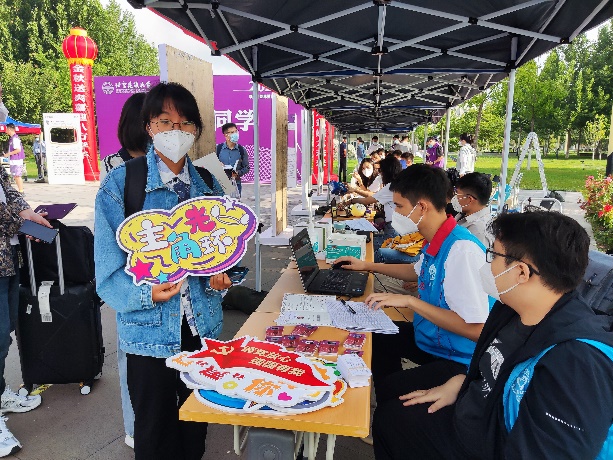 院领导高度重视迎新工作,早早来到迎新现场,指导迎新工作,走访慰问学生志愿者,并与新生们亲切交流。