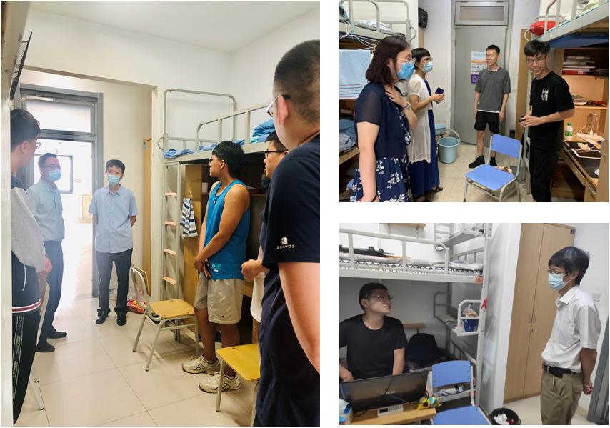 下午,学院领导班子一行来到学生宿舍,看望慰问返校学生。提醒学生严格遵守各项防疫规定,做好个人防护;鼓励学生尽快调整状态,充分利用在校学习优势完成学业任务。