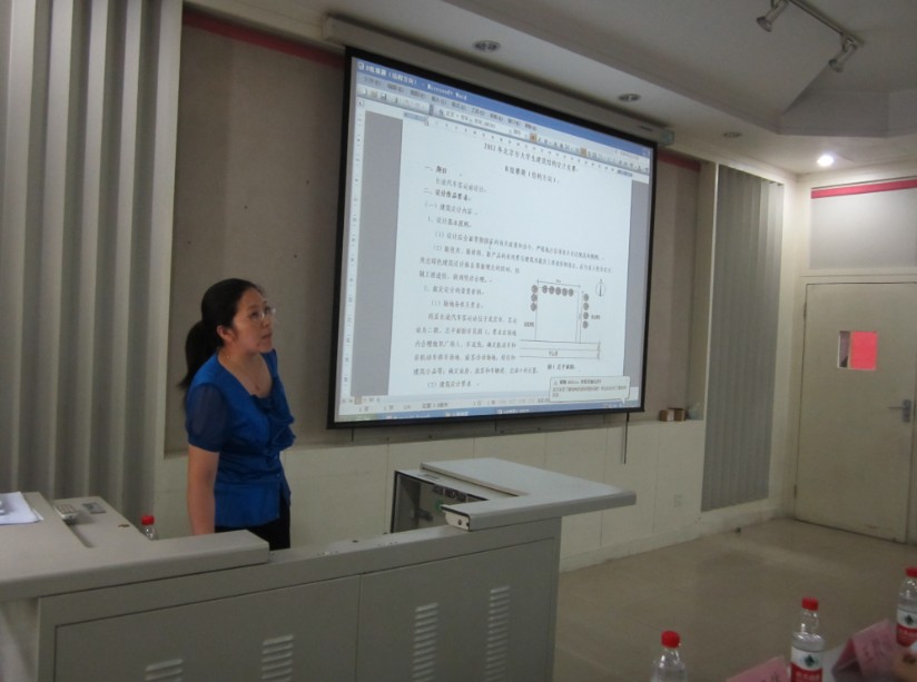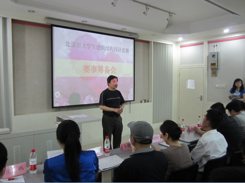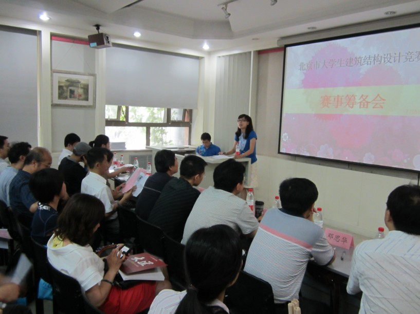 2012年7月5日星期四上午,我校在教4-104召开北京市大学生建筑结构设计竞赛赛事筹备会,介绍决赛安排,解读赛题。
