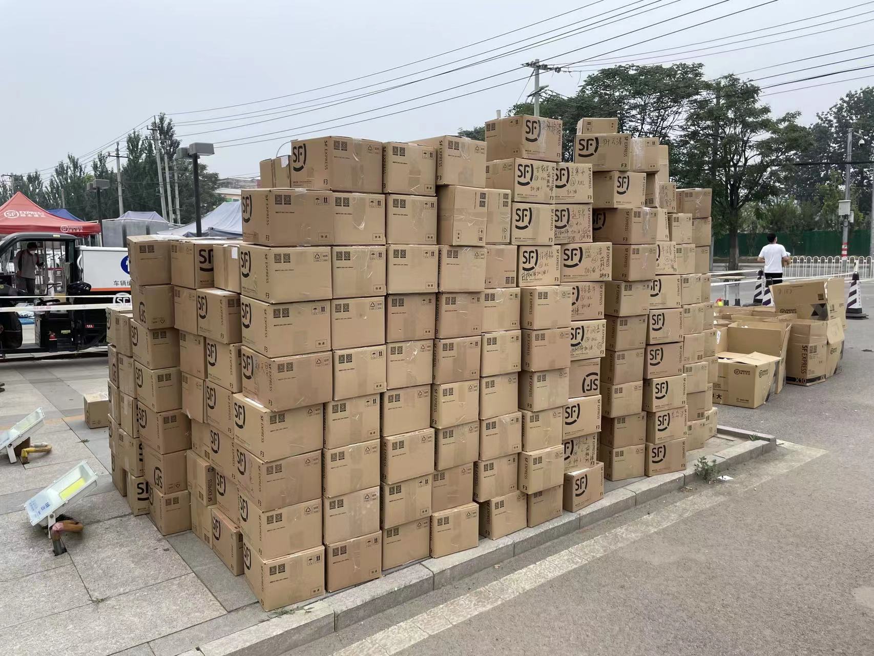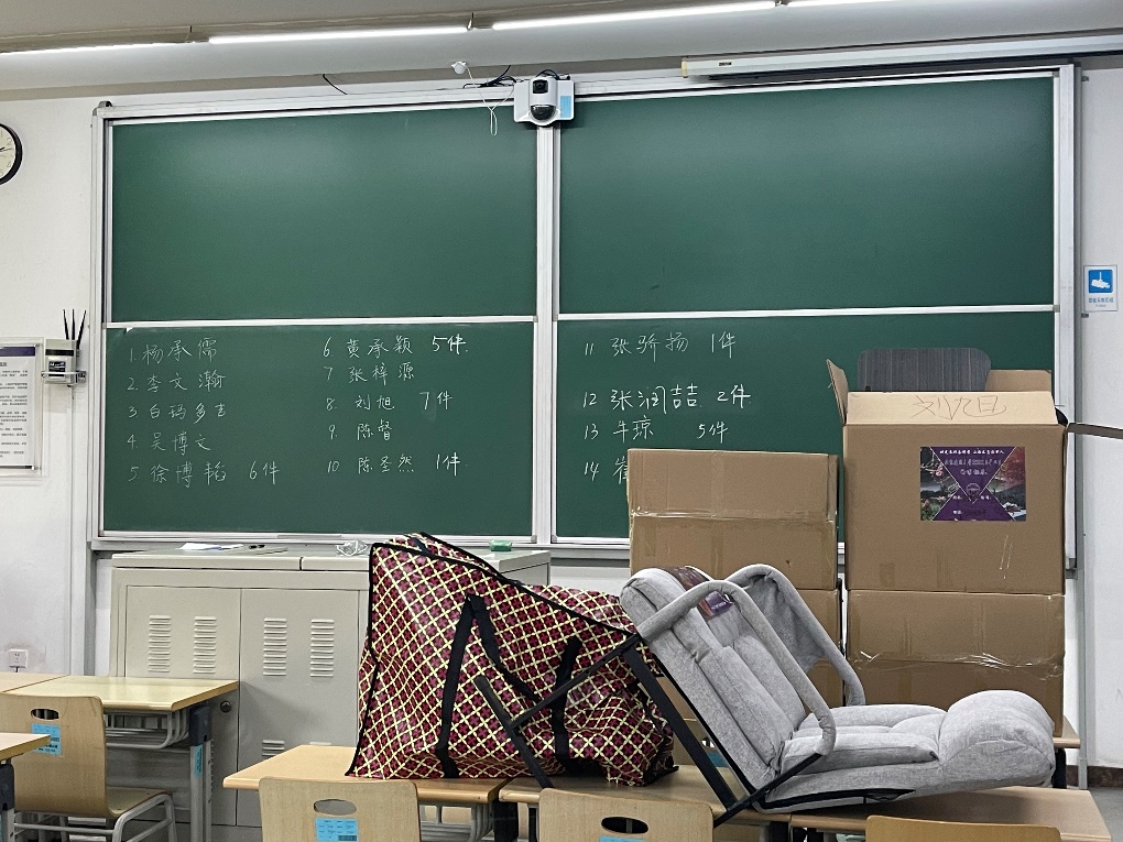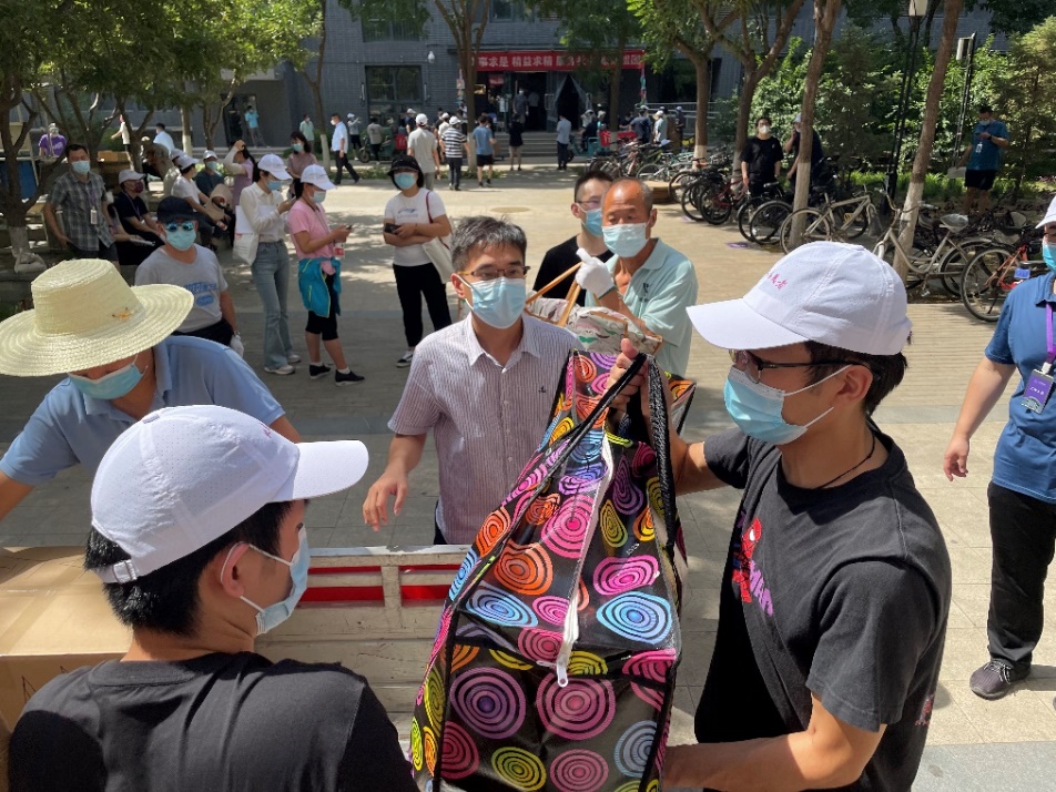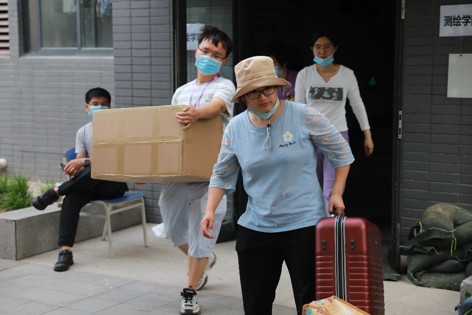 高温对于打包工作是不利的气候条件,返校的同学们克服夏季暑热,互帮互助、大力配合,在老师和物业工作人员的帮助下有序高效的整理和转运个人物品,帮助京外不能返京返校的舍友一同打包、邮寄行李物品。