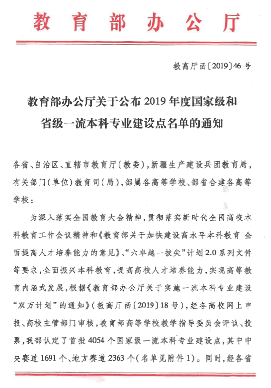 近日,教育部办公厅下发《教育部办公厅关于公布2019年度国家级和省级一流本科专业建设点名单的通知》(教高厅函2019 46号),认定太阳成集团tyc7111cc土木工程、建筑环境与能源应用工程、给排水科学与工程、测绘工程、建筑学、工程管理6个专业为首批国家级一流本科专业建设点,车辆工程、计算机科学与技术、城乡规划3个专业为首批北京市级一流专业建设点。