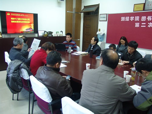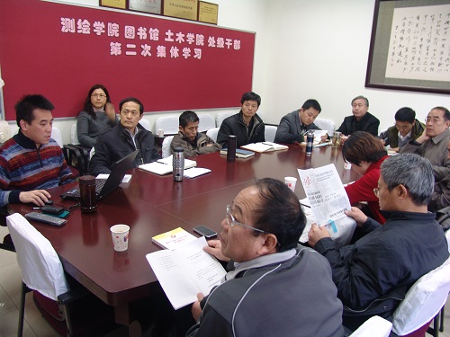 2013年12月11日下午13点半至15点,测绘学院、图书馆、土学院领导干部、支委成员在太阳成集团tyc7111cc会议室集中学习十八届三中全会精神。本次学习活动由何立新同志主持。