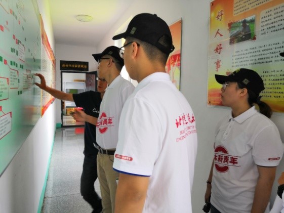 调查完邱家店村的整体面貌,实践团的成员们又深入到了村子内部,对村子内部的街道分布、基础设施等安排进行了仔细的调研记录,成员们对整个村落进行了精确的测量,分工明确,成员们彼此配合,拍照记录、实地测量、详细记录。为了让实践团的成员们对邱家店村的规划有一个更明确地方向和着手点,宋良民主任带领实践团的成员们来到了宝泉山镇的中心位置——八盘道村。八盘道村作为宝泉山镇的模范村,街道排列井然有序,公共的基础设施相对来说也是比较全面,而且绿化比起邱家店村来说也是整洁干净了许多,通过全面的走访调研,实践团的成员们对于自己即将准备的规划工作有了一个比较详细的认知。