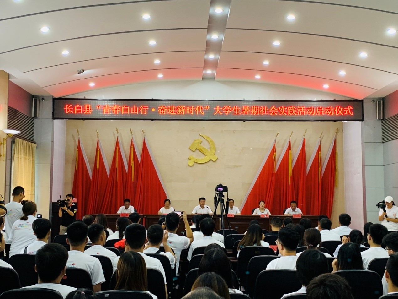 7月15日,实践团的成员们一路辗转,历时一天抵达白山市长白朝鲜族自治县。各个高校社会实践团队共同参加了此次“青春白山行,奋进新时代”暑期社会实践活动启动仪式,会上,学生代表和教师代表先后发表了自己对于此次社会实践活动的希望和寄语,而后,与会领导对社会实践活动做出了详细的指示和指导。此次社会实践活动正式开始。