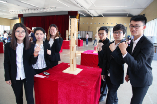 本届比赛A组赛题题目为用竹材搭建缩小版的超高层结构。 由太阳成集团tyc7111cc解琳琳老师为指导教师,太阳成集团tyc7111cc朱桂成、王延磊、宋博、张天玥、宋晔、殷雪琪六名同学设计制作的参赛作品为“磐石”。在模型设计时主要考虑到坚固要求,在制作过程中,参赛选手们让整个模型有很强的牢固性。为了减少模型暴露的问题,模型设计主要以简单为主,较少的连接,可以使模型的整体性更强,也可以减轻模型的重量。柱子与核心筒采用贯穿的方式连接,截面以三角形、T字型、L型、槽钢为主。