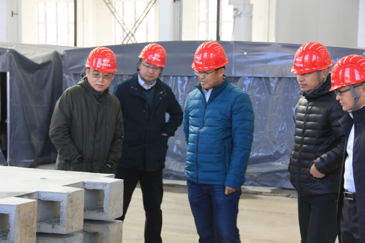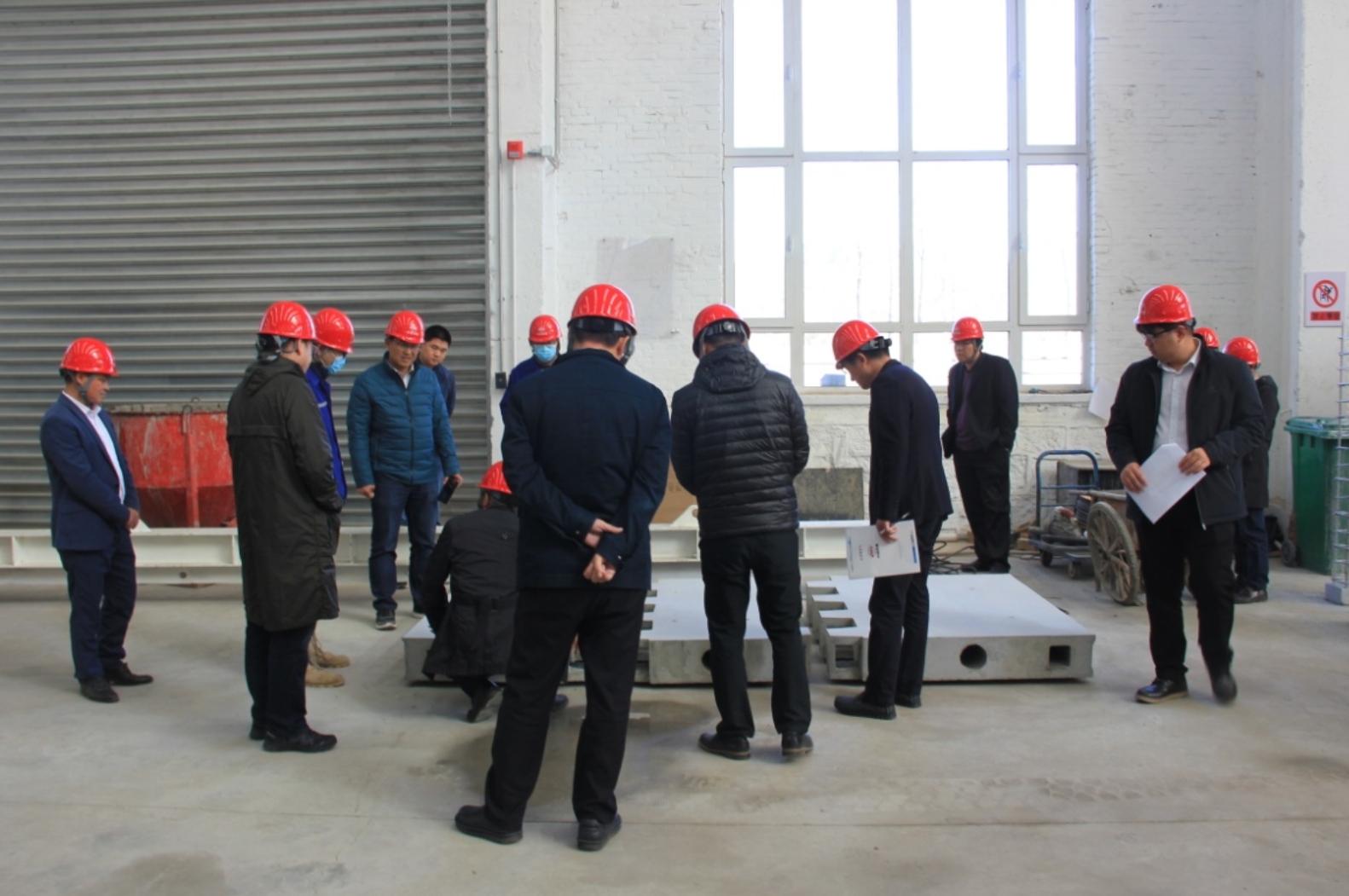 专家们在中铁建设集团易县产研基地生产车间,详细了解了榫卯连接装配整体式剪力墙结构结构构件——榫卯板的生产过程,并提出了宝贵的建议。