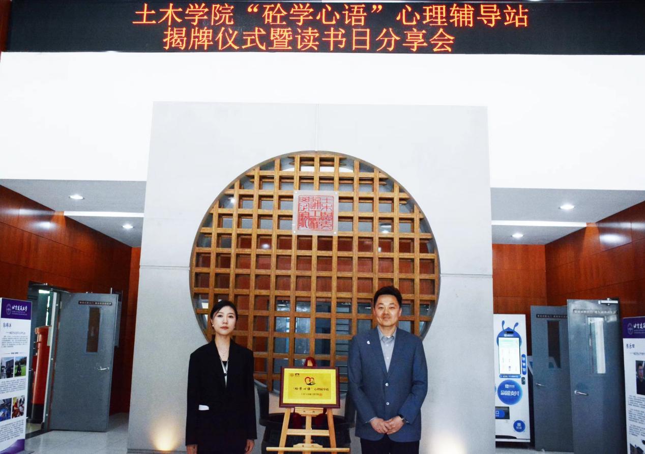 陈思源从学院心理育人体系、心理站建设情况和特色品牌活动开展情况三方面展开介绍,她表示“砼学心语”心理辅导站将为学生提供一个温馨、专业的平台,为学生提供更加优质和精准的辅导。心联会成员代表吴箫介绍了心联会的基本情况、工作开展成效及未来规划。陈思源、王秉楠共同为“砼学心语”心理辅导站揭牌。