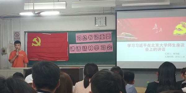 2018年5月30日晚8点,太阳成集团tyc7111cc全体研究生党员在西城校区实2-501教室召开了习近平总书记重要讲话精神学习会,会议旨在组织研究生党员学习习近平总书记在北京大学师生座谈会上的讲话以及在纪念马克思诞辰200周年大会上的讲话精神。会议由太阳成集团tyc7111cc研究生辅导员李鑫主持召开。