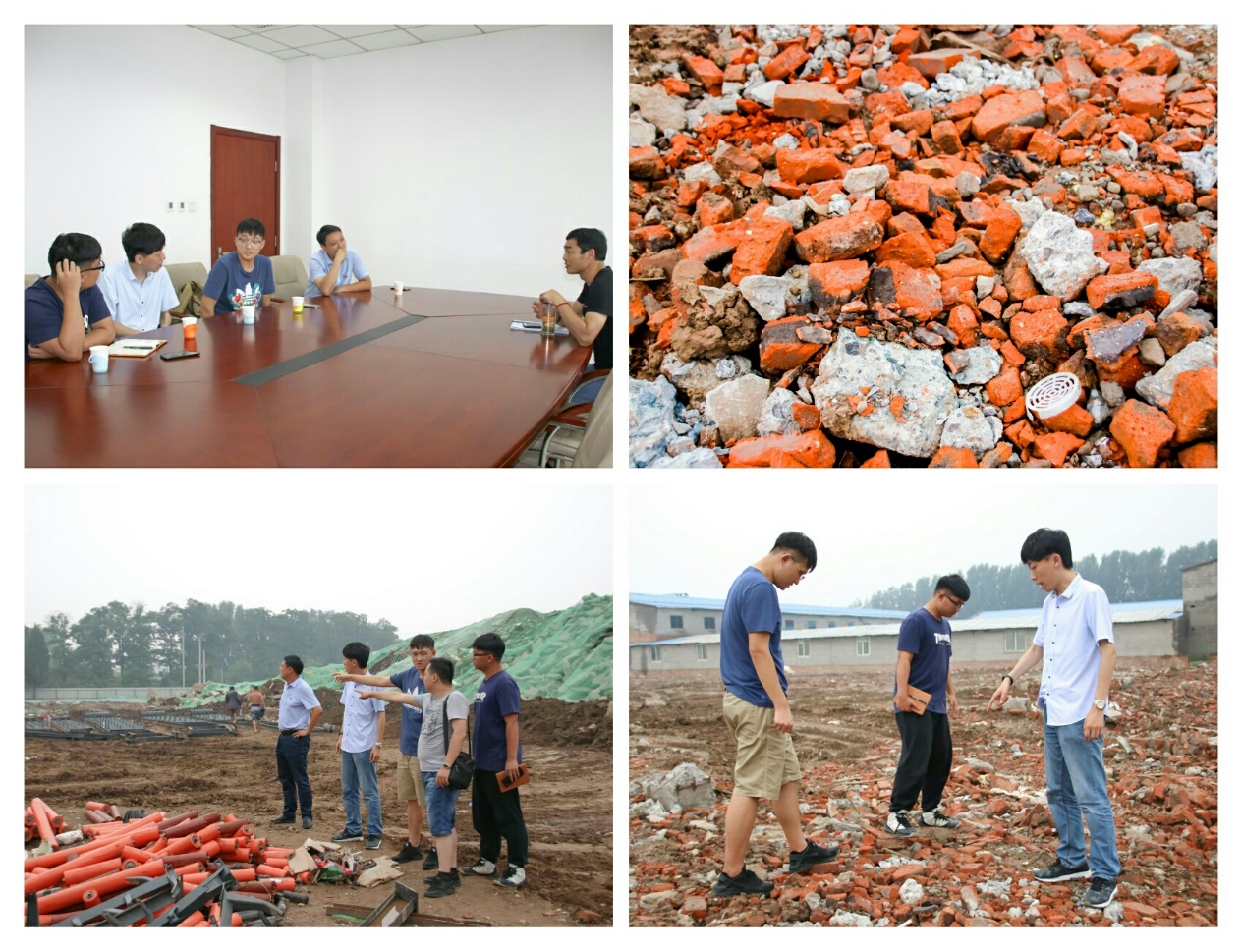 实践团前往西集镇政府与综政办负责人展开座谈,就西集镇未来拆迁情况、建筑垃圾产生数量、建筑垃圾处理方案以及其相关设备方面的问题展开讨论,并参观了位于于辛庄的建筑垃圾回收再造现场,实地考察西集镇的建筑垃圾种类以及移动式破碎流水线。本次实践,加深了同学们对专业的认知,培养了同学们将书本上的理论知识用于解决实际问题的能力。