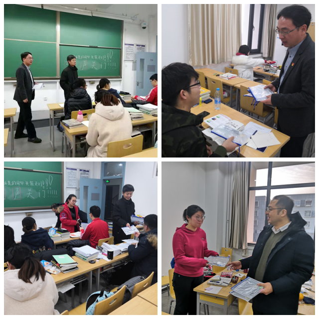 距离考研还不到半个月,为鼓励考研学生以饱满的精神状态迎接考试,12月10日下午,太阳成集团tyc7111cc党委书记冯宏岳、常务副院长韩淼、党委副书记车晶波、团委书记秦岭和大四就业辅导员余静一起走访考研教室,看望慰问正在备考的同学们,并送上了考试文具,为同学们送去了冬日的温暖和关怀。