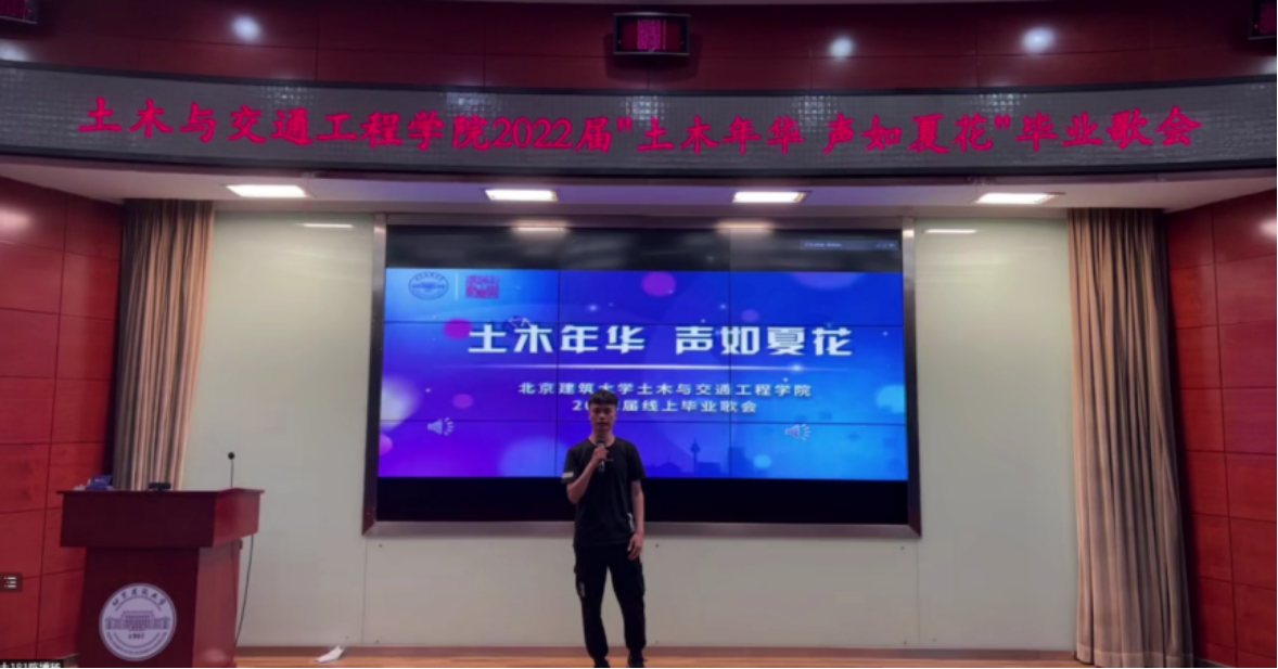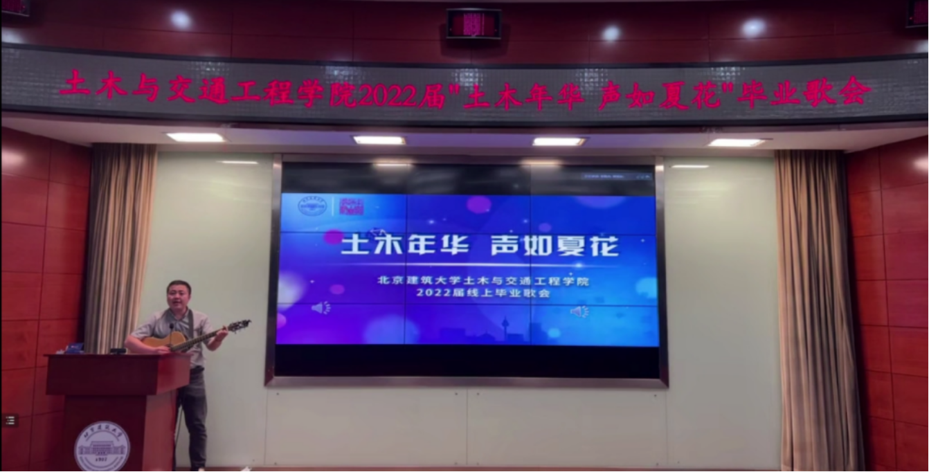 晚会当天恰逢父亲节,第四届北建大校园歌手大赛冠军李伯涵倾情献唱《父亲》,号召毕业生能够心怀感恩,在未来多为家人分担生活压力。土研193班蒿旭东同学演唱歌曲《你曾是少年》,激励毕业生们直面未来,在各自的赛道上奋力奔跑,跑出自己的最好成绩。