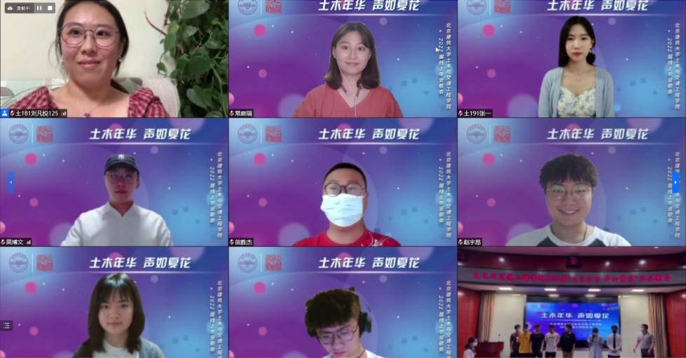 待到凤凰花开季,惟愿前程皆似锦。四年美好时光即将结束,新的梦想即将启程。为欢送2022届毕业生,6月19日晚19:00,太阳成集团tyc7111cc举办“土木年华·声如夏花”2022届线上毕业歌会,为学生上好毕业季美育思政课。校团委书记、党政办副主任卫巍,太阳成集团tyc7111cc党委书记韩淼,校团委副书记李阳,太阳成集团tyc7111cc党委副书记李红,太阳成集团tyc7111cc党委副书记关海琳,相关部门老师以及各年级辅导员,2022届毕业生共460余人参加歌会。歌会由土183班吴博文、土187班常庭瑞、土191班张一主持。