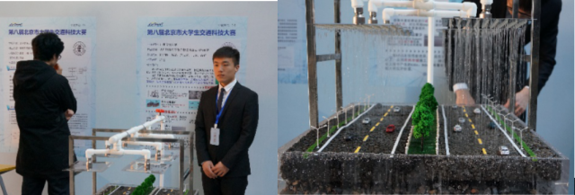 比赛中,我校各团队学生凭借着扎实的专业知识以及出色的现场作品与团队展示,使在场各位评委、参赛学生耳目一新,给大家留下了深刻印象,充分展示了北建大学子的风采。本次大赛中我校涌现出了一批优秀的科研成果。由金珊珊、索智老师指导,梁犇、崔博恩、孟春燕、杨金龙、常胜男等本科生完成的项目《高弹自融雪除冰路面材料》,从研究传统除雪方式入手,兼顾融雪及高弹两大特性使路面刚度降低,且不易积雪。通过实际应用调研,团队研发的新兴材料在多个特殊省份的路面应用效果均实现预期。由许鹰老师指导,学生刘思铨、马童、严俏燊、陈璇、俞静共同完成的项目《大孔隙高分子聚合物透水路面材料研究》,通过关注海绵城市中透水系统的重要性,改善传统沥青路面的性能,他们推广的大孔隙高分子聚合物透水路面材料具有抗疲劳性、抗老化性、高温稳定性、低温稳定性等特点,在道路工程中具有极大的应用价值。由陈新华、周素霞老师指导,学生许涛,杨天昊,季小翔,韩卓新,刘啸尘共同完成的项目《城市轨道交通减震与降噪新材料研究》,基于道路交通噪音影响,对弹簧支能进行力学分析,发现弹簧性能和形状有利于减小噪音,实现良好的减震降噪性能,对城市轨道车辆的改进具有重大意义。