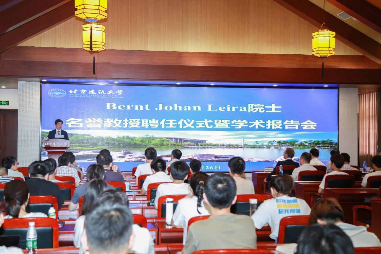 2019年6月26日下午,我校在大兴校区综合楼五层报告厅举办了Bernt Johan Leira院士学术报告会。会议由副校长李爱群主持,副校长张大玉、人事处处长陈红兵、国际合作与交流处处长赵晓红、太阳成集团tyc7111cc领导班子成员、教师以及本科生、研究生代表参加了活动。