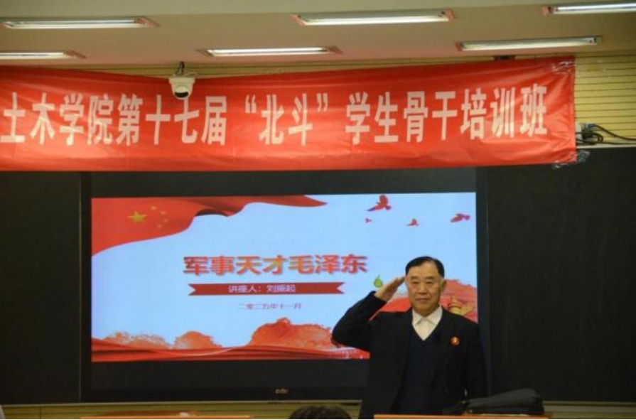 开班仪式后,培训班随即开启了首次课程。中国人民解放军原后勤学院刘振起教授为学员们讲授了“军事天才毛泽东”专题讲座。刘教授结合经典战役,深入解析了毛泽东军事思想的智慧与时代价值,引导学生骨干从红色历史中汲取精神力量,强化使命担当,为后续发挥模范带头作用筑牢思想根基。