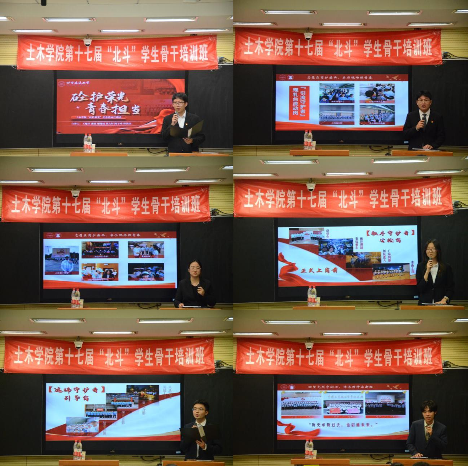 在“砼护荣光青春担当”宣讲环节,由王旭昂、潘磊、谢晓曼、张文轩、陈子琦、韩汶序六位成员组成的宣讲团,分享了担任九三阅兵志愿者的亲身经历。他们讲述了从前期的积极准备与周密协调,到见证阅兵现场气势磅礴的震撼瞬间,以真挚的感悟,生动传递了阅兵背后的家国情怀,极大地激发了在场学生骨干的使命感与奉献热情,为骨干培训注入了鲜活的思想动能。