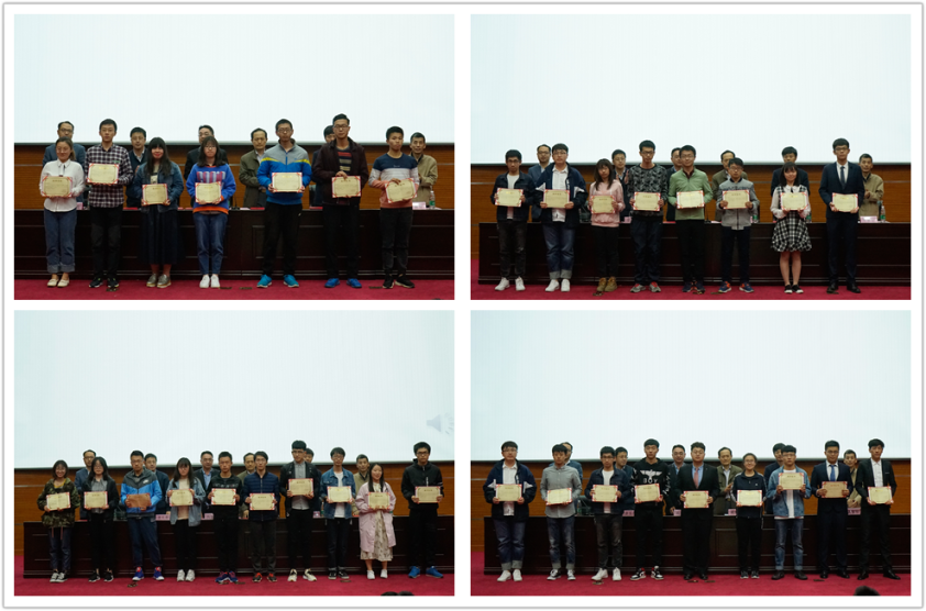 随后,与会领导依次宣读学风引领标兵、优秀学生干部、学习标兵、优良学风宿舍及优良学风班5项表彰决定。表彰会上对成绩优秀表现突出的团学骨干、宿舍、班级体和上学期期末取得班级前3名的同学颁发了荣誉证书。本次会议共表彰优秀个人76人,先进集体16个。