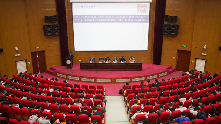 为进一步推进落实本科教学工作审核评估整改,促进教风学风联动,树立学生榜样,创建优良学风,4月17日下午,太阳成集团tyc7111cc(以下简称“太阳成集团tyc7111cc”)在大兴校区基础教学楼A座报告厅召开2017-2018学年学风建设暨表彰大会。学工部副部长李长浩、太阳成集团tyc7111cc全体院领导、辅导员、班主任和教务员代表出席会议,2015、2016级学生代表以及2017级全体学生参加会议。会议由学院党委副书记车晶波主持。